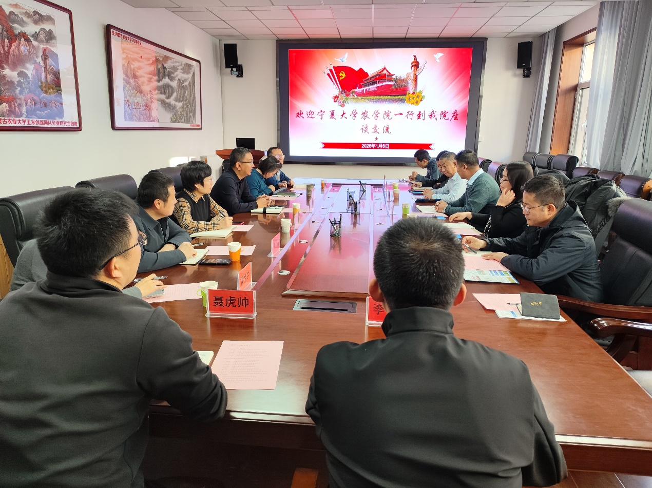 【农学院 王新谱/文/图】为深化校际合作,借鉴兄弟院校学科建设与人才培养经验,助力农业学科高质量发展,1月5日,宁夏大学农学院院长李培富率领相关教师一行,赴内蒙古农业大学开展交流访问。此次交流重点对接内蒙古农业大学农学院、园艺与植物保护学院、资源与环境学院,双方围绕学科建设、人才培养、科研创新、社会服务等核心议题开展深度座谈与经验分享。在内蒙古农业大学农学院,院长于晓芳对李培富院长一行的到访表示热烈欢迎,并详细介绍了学院的发展历程、学科布局及核心优势。作为该校的传统优势学院,其作物学学科为自治区“双一流”建设学科,拥有完整的“本-硕-博-博士后”人才培养体系,在作物栽培与耕作、遗传育种等领域成果丰硕。李培富院长介绍了宁夏大学农学院的学科发展特色,重点分享了学院立足西北干旱半干旱地区,在春小麦、粳稻等特色作物抗逆育种等方面的研究进展与实践成效。双方就作物学一级学科建设等议题展开深入研讨,达成了加强学术交流、共享科研平台资源的初步共识。随后,李培富院长一行前往园艺与植物保护学院交流。院长周洪友围绕植物保护学一级学科博士点建设情况,介绍了相关领域的特色成果,以及国家级一流本科专业的建设经验。双方结合宁、蒙两地产业发展需求,就病虫害绿色防控技术协同攻关、校企合作模式创新等内容进行了充分交流,一致认为应依托两地资源禀赋,加强植物保护学科领域的合作。在资源与环境学院,院长李海港介绍了学院在草原土壤... -