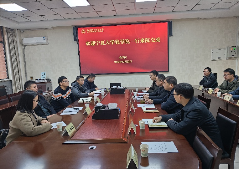 【农学院 刘万茂/文/图】2025年12月22日,宁夏大学农学院院长李培富率队赴西北农林科技大学交流访问,先后走访该校农学院、资源环境学院,围绕学科建设、人才培养、本科专业和学位点建设等核心议题,与对方开展深度座谈交流。宁夏大学农学院副书记兼副院长王锐、农艺系主任王彬、农业资源与环境系副主任王西娜、农艺系副主任刘万茂一同参与交流活动。