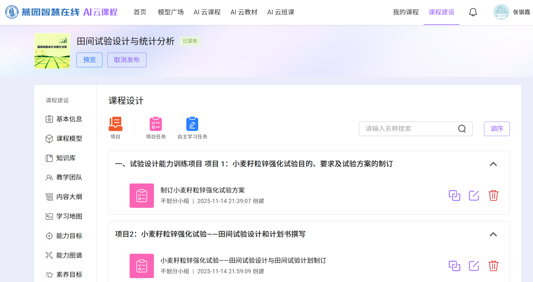 她始终坚守科研反哺教学的理念,立足作物遗传育种、作物抗逆分子育种等主攻研究方向,深耕田间试验、作物抗性筛选等科研工作,把前沿科研成果、田间实践案例融入课堂教学、实践实训全过程,让专业教学更贴合学科前沿、贴合生产实际。近几年,她聚焦小麦耐旱性等研究方向,持续开展科研研究,在夯实自身学术功底的同时,也为课堂教学提供了鲜活的实操案例和前沿素材。以科研项目融入教学为切入点,基于AI大模型与学习地图+能力图谱构建了以能力为导向的《田间试验设计与统计分析》智慧课程,在燕园智慧在线正式上线。该课程与AI云教材,AI云班课可以相互切换,实现了从“静态文本”到“动态交互”,突破了知识传递的时空壁垒,更以“技术+教育”的深度融合,为培养高等农业综合性创新人才提供了“数字参谋”,有效提升了学生的专业认知和科研素养。此外,凭借扎实的学生指导工作,她先后获评本科毕业论文优秀指导教师,连续两年荣获大学生创新创业训练计划项目优秀指导教师称号。