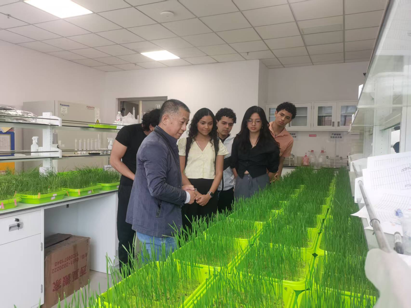 座谈会后,留学生们在学院老师的带领下参观了学院实验室,近距离接触各类农业实验设备,直观了解学院的教学科研条件,进一步加深了对农学专业的认知与热爱。