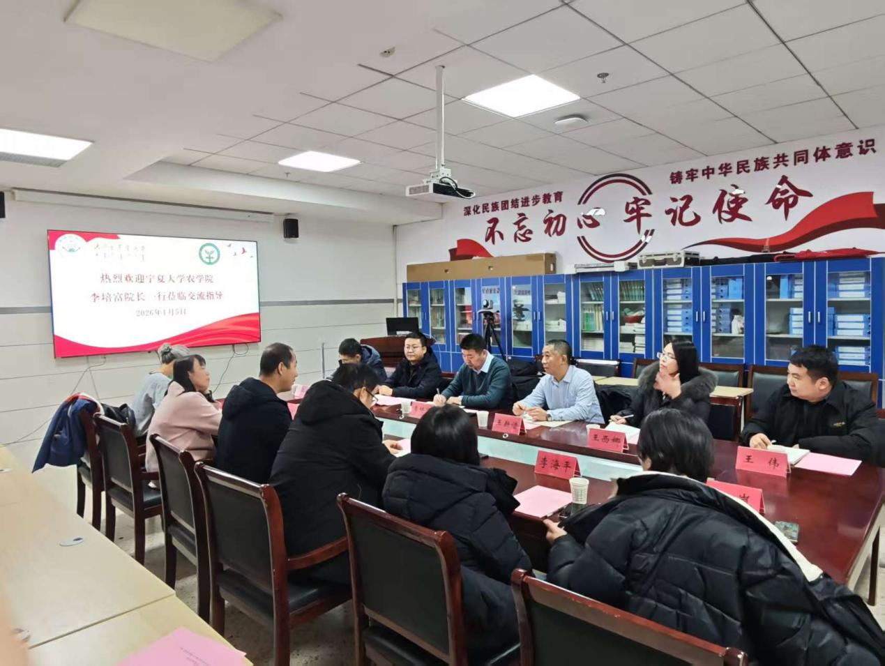 【农学院 王新谱/文/图】为深化校际合作,借鉴兄弟院校学科建设与人才培养经验,助力农业学科高质量发展,1月5日,宁夏大学农学院院长李培富率领相关教师一行,赴内蒙古农业大学开展交流访问。此次交流重点对接内蒙古农业大学农学院、园艺与植物保护学院、资源与环境学院,双方围绕学科建设、人才培养、科研创新、社会服务等核心议题开展深度座谈与经验分享。